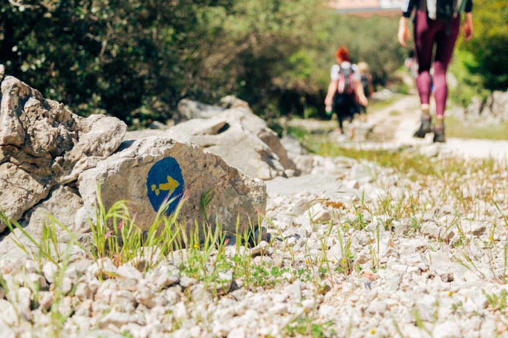 • Orijentacija: Krećite se isključivo stazama označenim Camino logom (žuta strelica na plavoj podlozi).